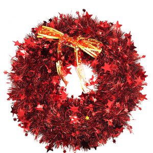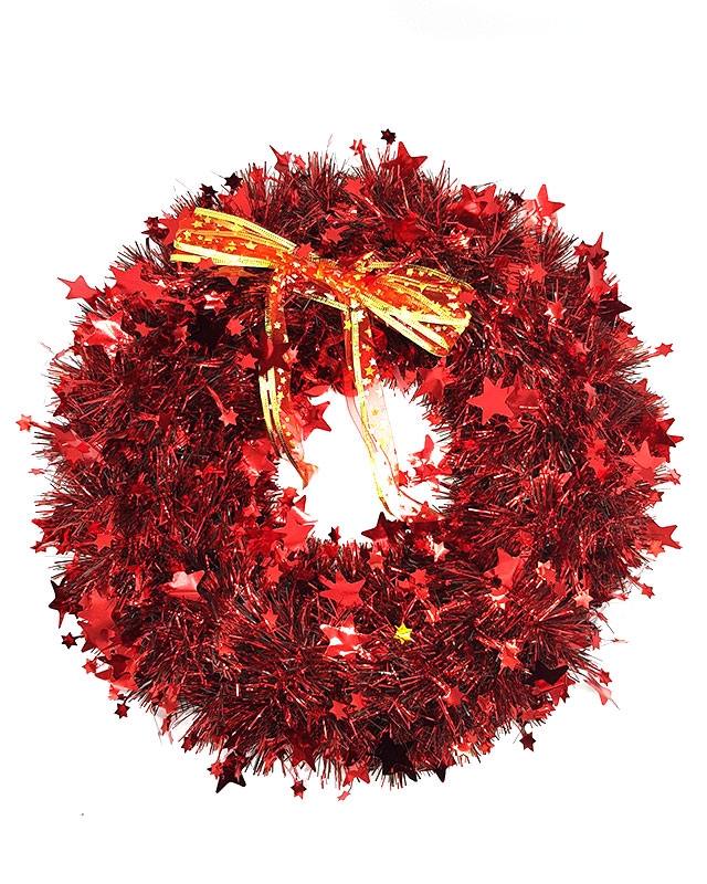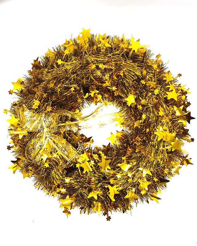 קישוט זר עגול לכריסמס עם גרילנד זהב או אדום 40 ס"מ