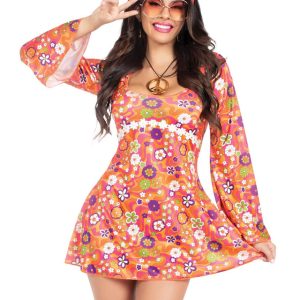 התחפושת כוללת: שמלה מעוצבת עם פרחים בגוונים שונים, סרט ראש, משקפיים, שרשרת עם תליון פיס, עגילים וכיסויי רגליים עם פרנזים.