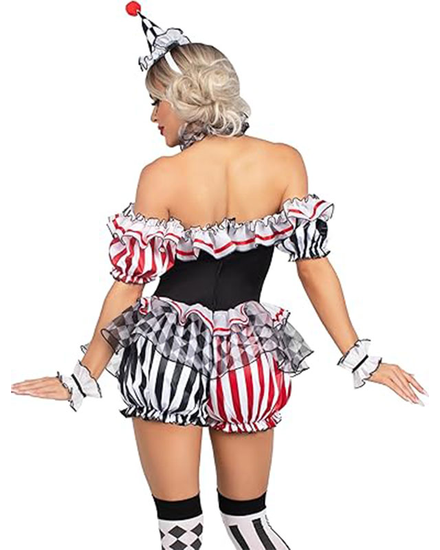 Women's Darling Harlequin Sexy Clown Costume With Clown Hat Headband