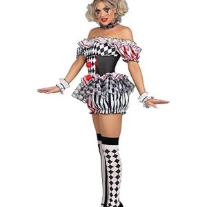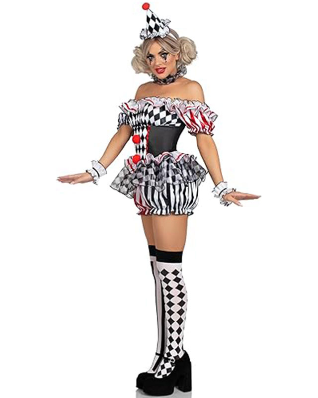 תחפושת ליצנית ג'וקרית בשחור אדום וללבן לנשים