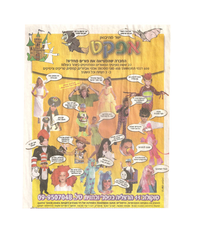 במהלך השנים נכתבו הרבה כתבות ובכל אחת מהן תמיד הזכירו את התחפושות המטורפות והמיוחדות שלנו, את הטריקים, הקסמים ואפילו משהו למבוגרים בלבד :-)והכתבה..